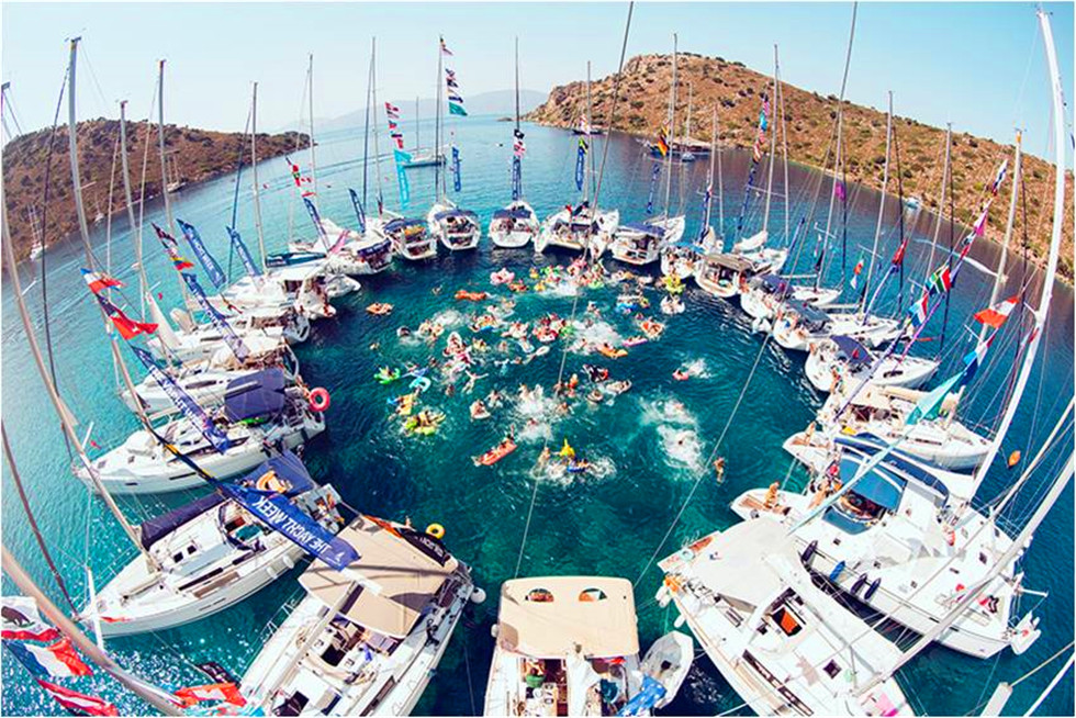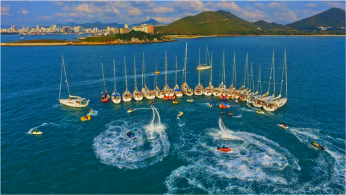 所有游艇“U”型排列在一望無垠的大海上,
